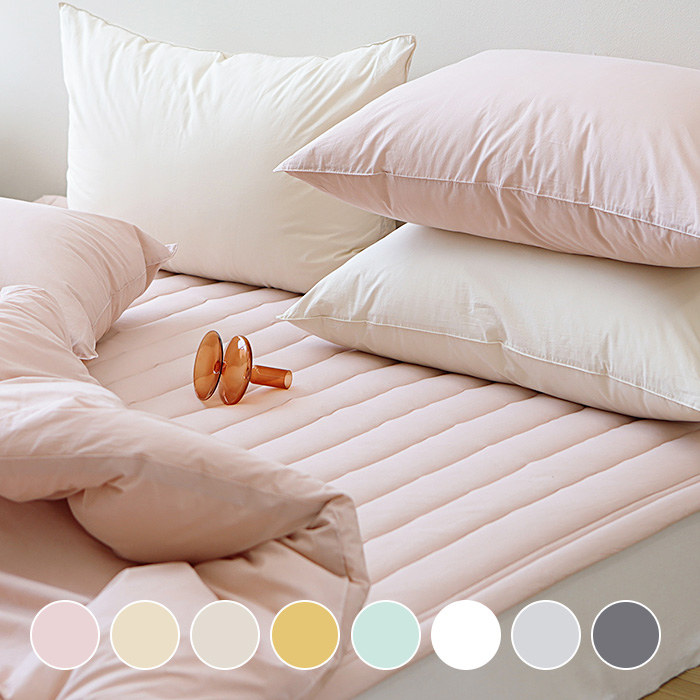 | 치수 | 차렵이불 : S(싱글) : 150x210 (±3cm) / Q(퀸) : 195x230 (±3cm) 누빔베개커버 : 50X70 (±3cm) 밴딩패드 : 슈퍼싱글(SS) 110X200 / 퀸(Q) : 150x200 (±3cm) | ||